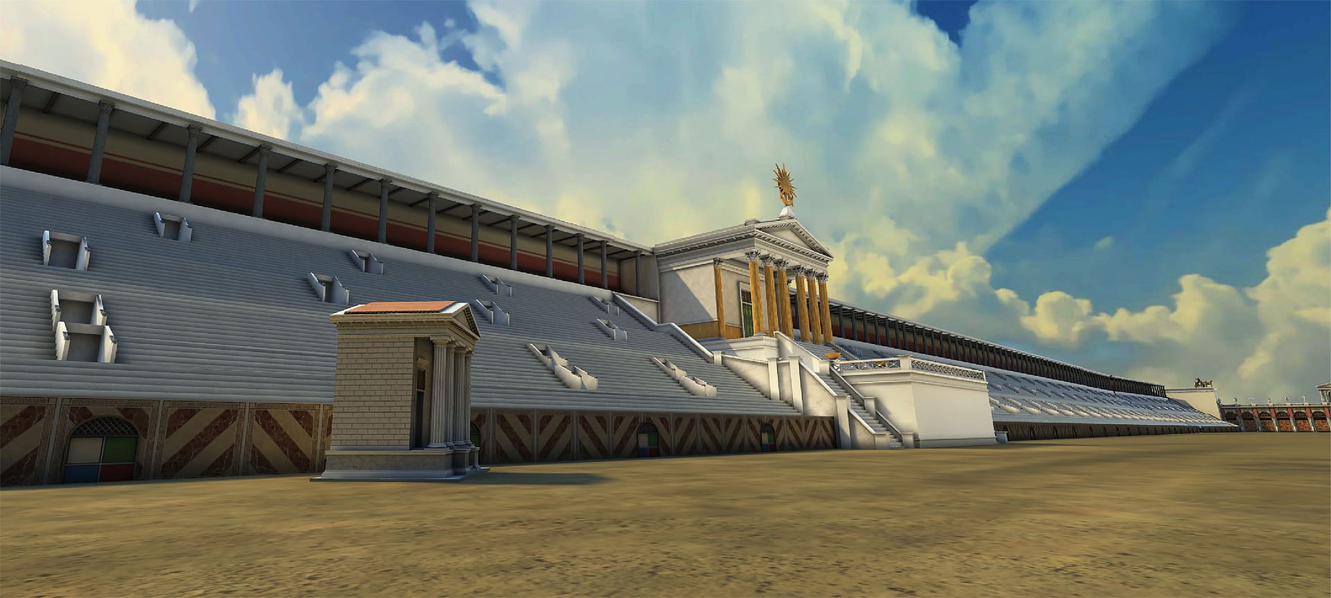 Il Circo Massimo era il più grande edificio per spettacoli mai costruito. Con i suoi 600 metri di lunghezza e 140 di larghezza, poteva ospitare fino a 250.000 spettatori – più di qualsiasi stadio moderno. Qui si svolgevano le famose corse delle quadrighe, che appassionavano tutta Roma.